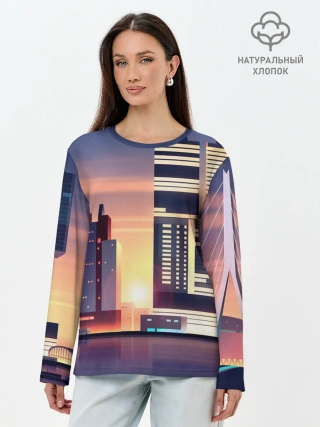 Лонгслив женский. Хлопок / Ночной Город