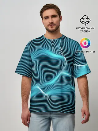 Мужская футболка оверсайз / Neon lines
