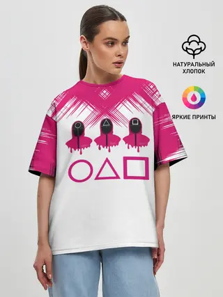 Женская футболка оверсайз / Игра в кальмара | геометрические фигуры,