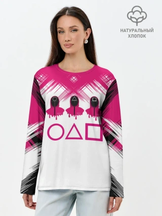 Лонгслив женский. Хлопок / Игра в кальмара | геометрические фигуры,