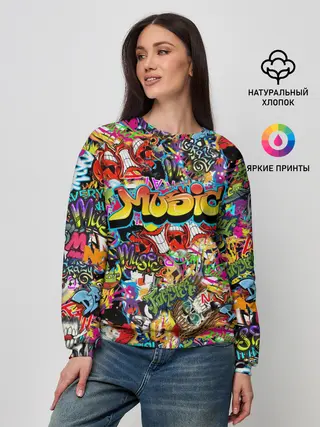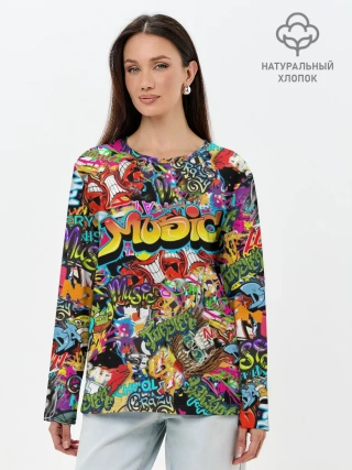 Лонгслив женский. Хлопок / Граффити. Крейзи мьюзик