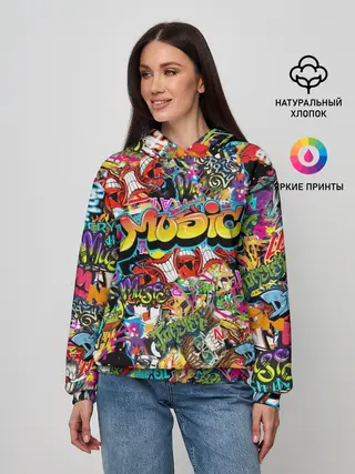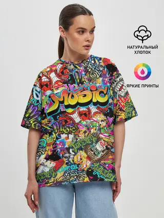 Женская футболка оверсайз / Граффити. Крейзи мьюзик