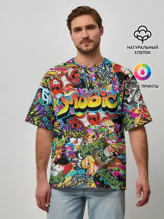 Мужская футболка оверсайз / Граффити. Крейзи мьюзик