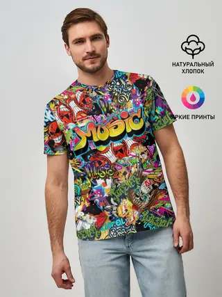 Мужская базовая футболка / Граффити. Крейзи мьюзик
