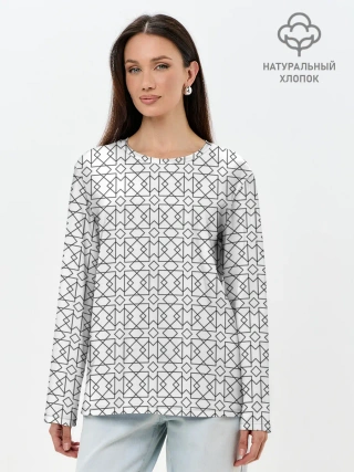 Женская базовая футболка / Бежево-малиновый абстрактный