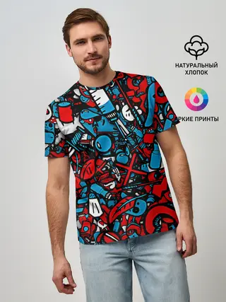 Мужская футболка оверсайз / Красно синие безумие