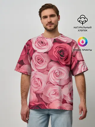 Мужская футболка оверсайз / Розовые Розы
