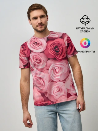 Мужская базовая футболка / Розовые Розы