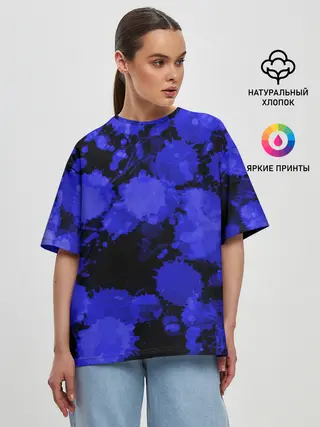 Женская футболка оверсайз / Синие Кляксы