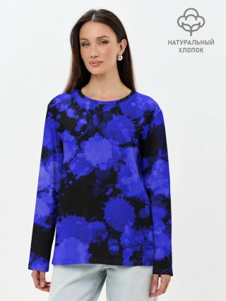 Лонгслив женский. Хлопок / Синие Кляксы