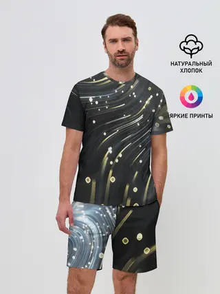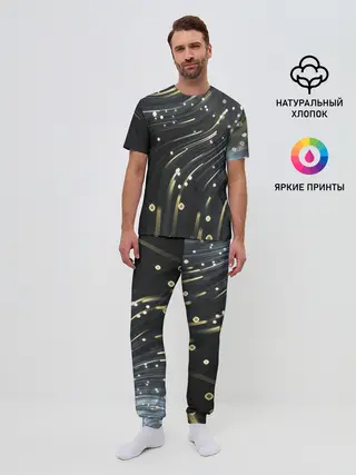 Мужская пижама с брюками / Абстракция искры полосы боке