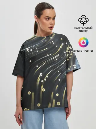 Женская футболка оверсайз / Абстракция искры полосы боке