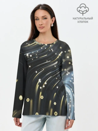 Лонгслив женский. Хлопок / Абстракция искры полосы боке