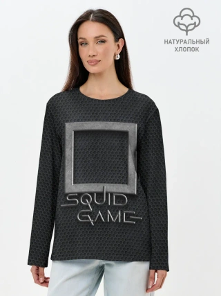 Лонгслив женский. Хлопок / ИГРА В КАЛЬМАРА СИМВОЛ КВАДРАТ | SQUID GAME