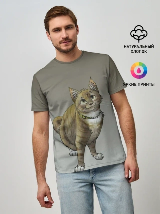 Мужская базовая футболка / полосатый уличный кот