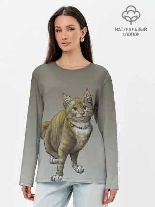 Лонгслив женский. Хлопок / полосатый уличный кот