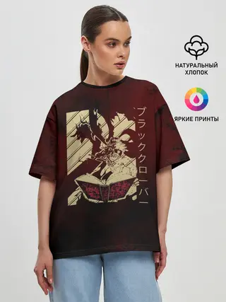 Женская футболка оверсайз / Аста с книгой магии и демон