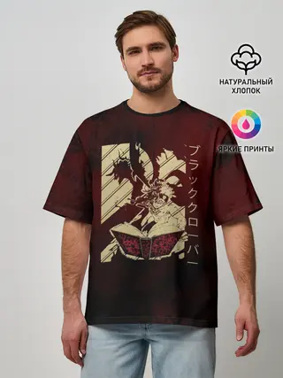 Мужская футболка оверсайз / Аста с книгой магии и демон