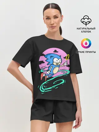 Женская базовая футболка / SONIC BLUE PATTERN | СИНИЙ ЁЖ