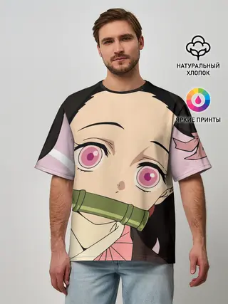 Мужская футболка оверсайз / Незуко, Nezuko