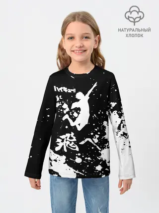 Детский лонгслив / Fly High Haikyu!! черно - белый
