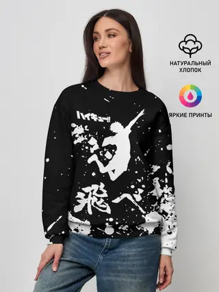 Женский свитшот / Fly High Haikyu!! черно - белый