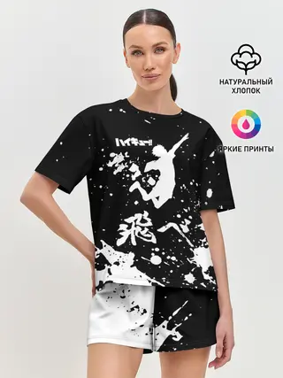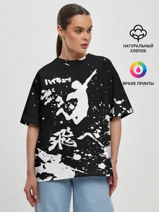 Женская футболка оверсайз / Fly High Haikyu!! черно - белый