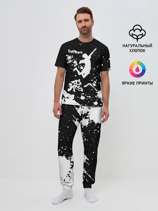 Мужская пижама с брюками / Fly High Haikyu!! черно - белый