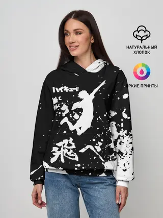 Женское худи / Fly High Haikyu!! черно - белый