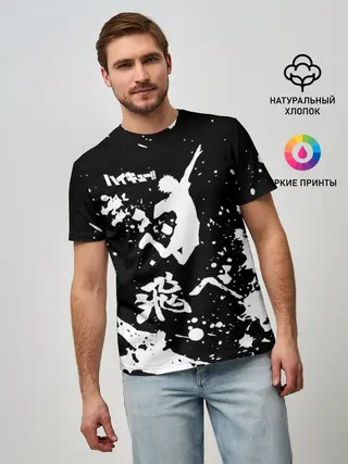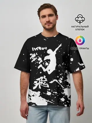 Мужская футболка оверсайз / Fly High Haikyu!! черно - белый