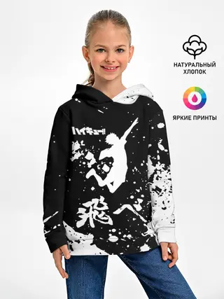 Детское худи / Fly High Haikyu!! черно - белый