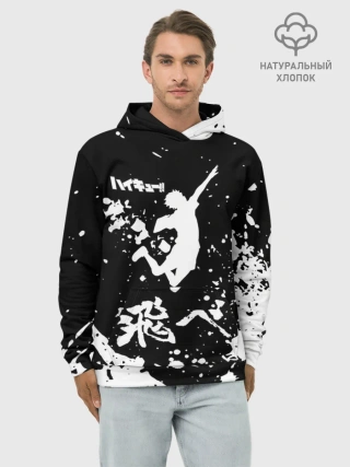 Худи мужской база хлопок / Fly High Haikyu!! черно - белый