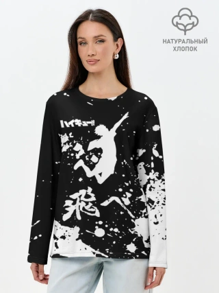 Лонгслив женский. Хлопок / Fly High Haikyu!! черно - белый