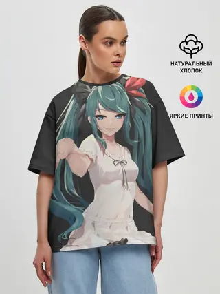 Женская футболка оверсайз / Хацуне Мику с протянутой рукой