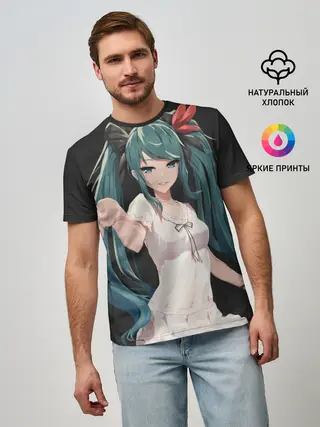Мужская базовая футболка / Хацуне Мику с протянутой рукой