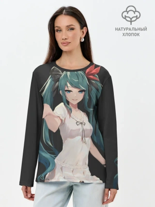 Лонгслив женский. Хлопок / Хацуне Мику с протянутой рукой
