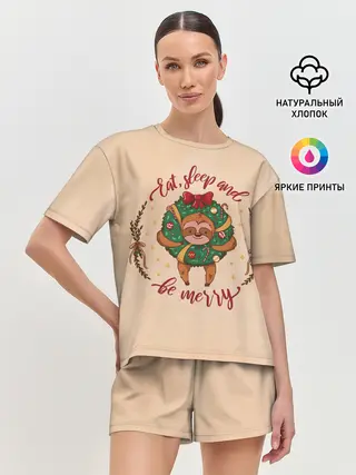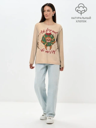Лонгслив женский. Хлопок / Ленивец Новый год
