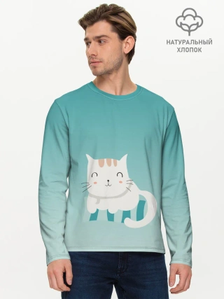 Мужской лонгслив базовый / котик на подстилке