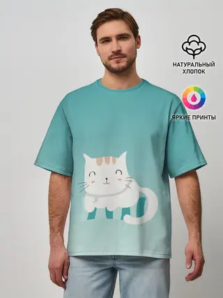 Мужская футболка оверсайз / котик на подстилке