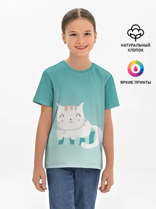 Детская базовая футболка / котик на подстилке