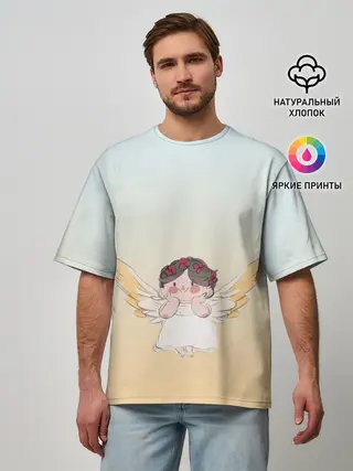 Мужская футболка оверсайз / акварельный ангелок