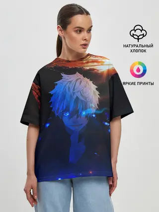 Женская футболка оверсайз / Сатору гото голубые глаза