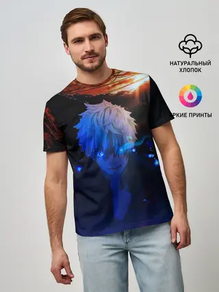 Мужская футболка оверсайз / Сатору гото голубые глаза