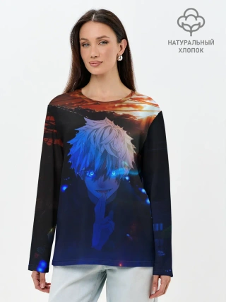 Лонгслив женский. Хлопок / Сатору гото голубые глаза