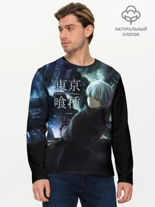 Мужской лонгслив базовый / Токийский гуль ночной город