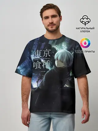 Мужская футболка оверсайз / Токийский гуль ночной город