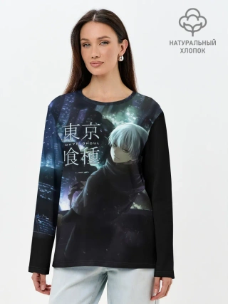 Лонгслив женский. Хлопок / Токийский гуль ночной город