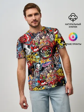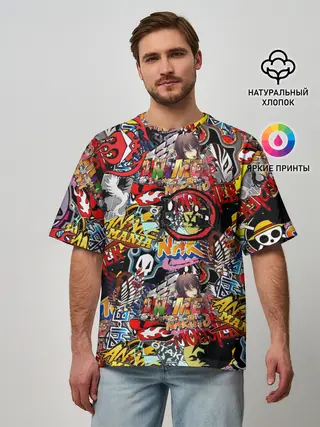Мужская футболка оверсайз / Логотипы Аниме Мультиков