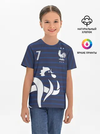 Детская базовая футболка / Гризманн в стиле формы Франции