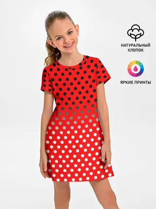 Женская базовая футболка / Белый горошек на красном фоне